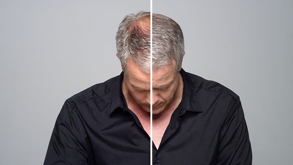 Mit der Hand die Haarverdichtungsfasern auf den betroffenen Stellen verteilen.